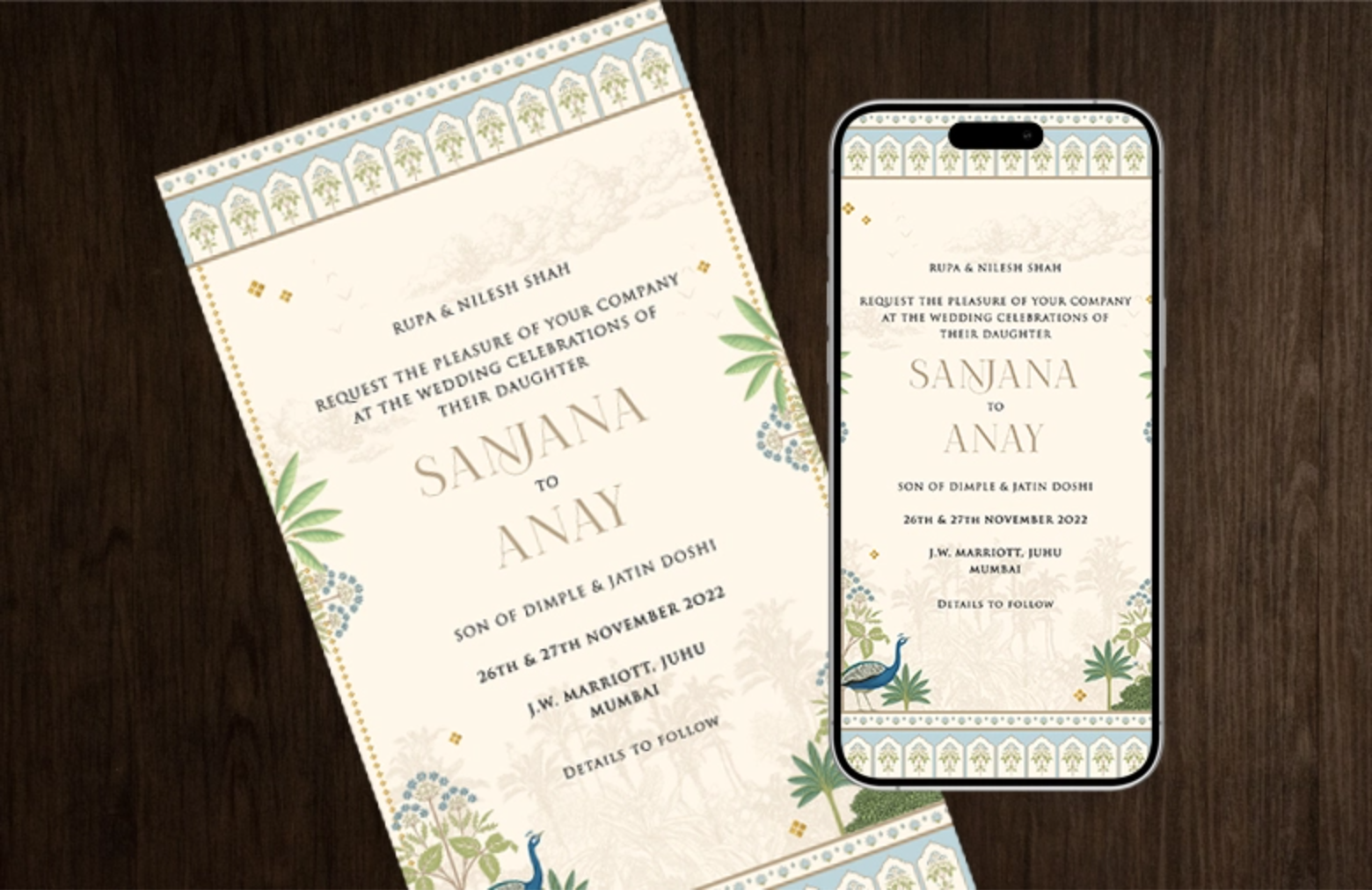 Stunning animated and static digital invites featuring bespoke illustrations, perfect for seamless digital viewing.
